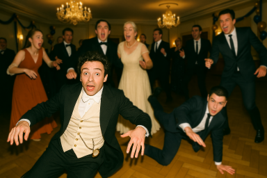 From that moment, all semblance of decorum seemed fated to erode. The dancing began with Strauss, dissolved into Gershwin, and then—without warning—the orchestra ceded the floor to some manner of disc jockey. The waltz gave way to what I am told is hip-hop. The open bar had already eroded restraint; from there, matters spiraled.