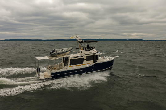 On a cold November morning at Manitowoc Marina, The Concord sits at her slip like a boat waiting for an assignment. The Ranger R-43 Command Bridge is a familiar sight on the Great Lakes, a favorite among long-range cruisers and Loop veterans, but this one carries itself differently. Its lines are tidy. Its brass shines a little more. Its decks feel walked, not posed.