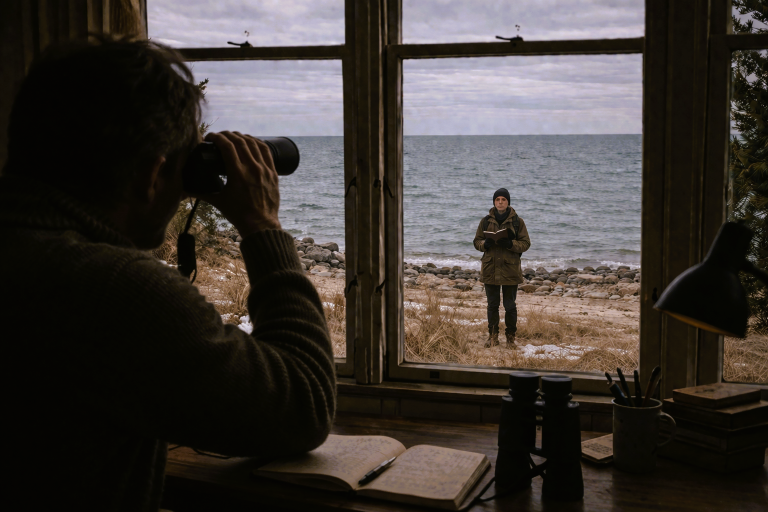 At approximately 14:30 hours, the same individual was observed at a distance along the northern shoreline, moving parallel to what would be considered an efficient survey path. They paused intermittently, as if comparing the terrain to something previously studied.